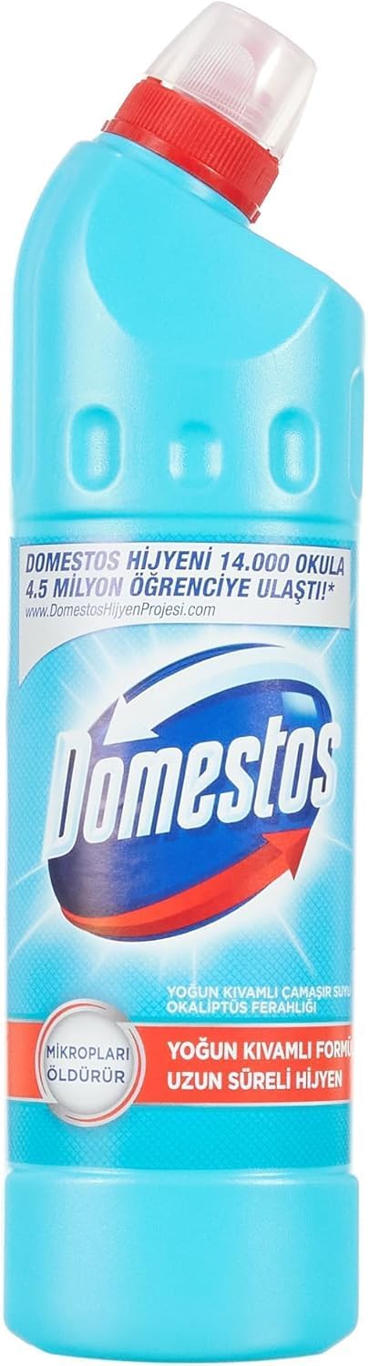 Domestos Yoğun Kıvamlı Çamaşır Suyu Okaliptus Ferahlığı, mikropların %99,9'unu yok ederek yüksek seviyede koruma sağlar
