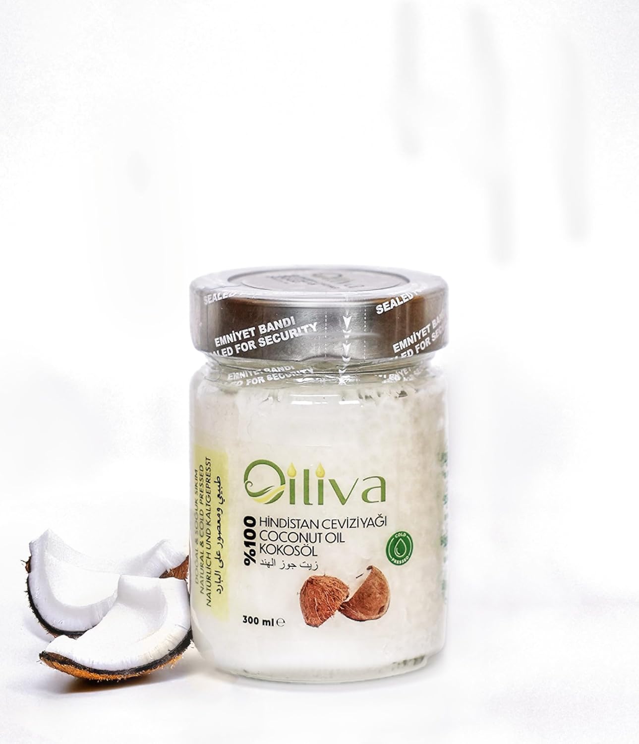 --- OILIVA - Gourmet Delights / Cold Pressed Coconut Oil 300 Milliliters - Quality Guarantee: OILIVA produces with high quality standards and is ISO (International Organization for Standardization) certified. - 100% pure, plant-based, and natural. - Obtained through cold pressing method. (Preserves nutritional values by which minerals are retained.) - Coconut oil helps to boost your metabolism and increase your energy levels thanks to its healthy fatty acids. It also moisturizes the skin, provides a natural solution for hair care, and adds a delicious flavor to your meals. - Its structure rich in medium-chain triglycerides (MCTs) supports the body's rapid energy production and contributes to fat burning. - Its natural structure that fights against microbes and viruses helps to heal irritations on your skin. - Regular consumption of coconut oil can help protect your heart health by increasing good cholesterol (HDL) levels.
